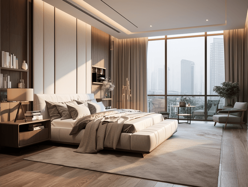 1、功能性与舒适性的结合:现代简约风格注重功能性和实用性,这对于卧室来说至关重要,合理的空间布局、舒适的家具和便捷的设施能够让居住者更好地放松和休息。